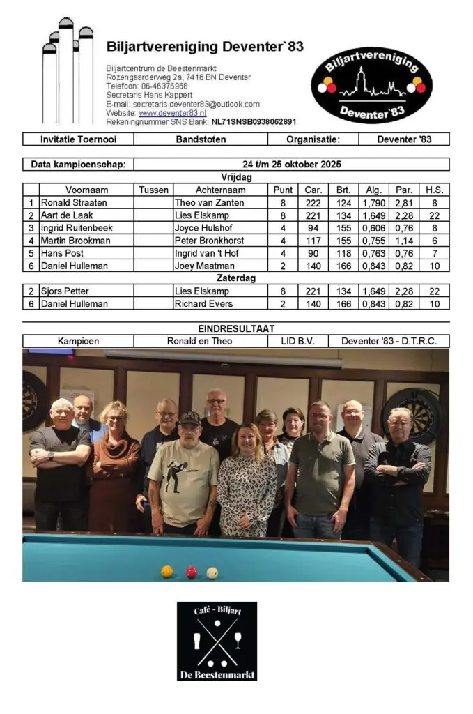 Winnaars Deventer Bandstoot Competitie